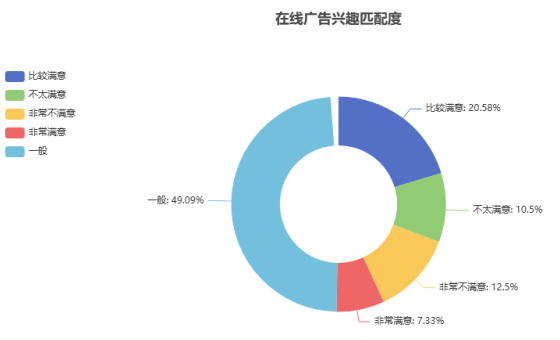 关键发现一:广告与用户兴趣匹配度不足。60%以上用户认为广告与自身兴趣匹配度一般及以下,说明当前广告定向投放的精准度有待提升。针对这一问题,企业可通过用户行为数据(如浏览历史、搜索记录)构建精准用户画像,采用程序化交易广告实现定向投放,提高广告与用户需求的匹配度。