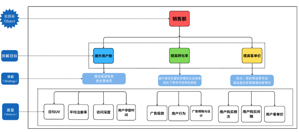 关键发现二:广告创意性欠缺。70%用户觉得广告缺乏创意,其中“不太满意”与“非常不满意”占比超过20%,创意不足导致广告难以吸引用户注意力。提升广告创意需从用户画像出发,结合叙事化表达、视觉化设计与情感共鸣,例如职业教育广告可采用“职场逆袭故事”形式,突出课程带来的实际改变。基于OSM模型搭建渠道质量评估体系,明确以销售额为核心目标,拆解为流量、转化、用户参与度三大维度指标,为渠道分析提供框架支撑。