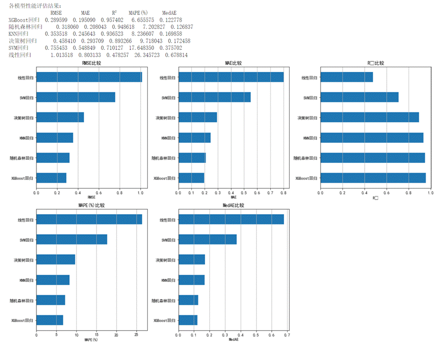 为全面评估模型性能,本研究引入RMSE、MAE、R²、MAPE、MedAE等5类评估指标,对比结果显示:XGBoost模型的MAPE仅为6.66%,远低于线性回归的26.35%,说明其在实际业务场景中的预测误差更小,更适合作为需求预测的核心模型。