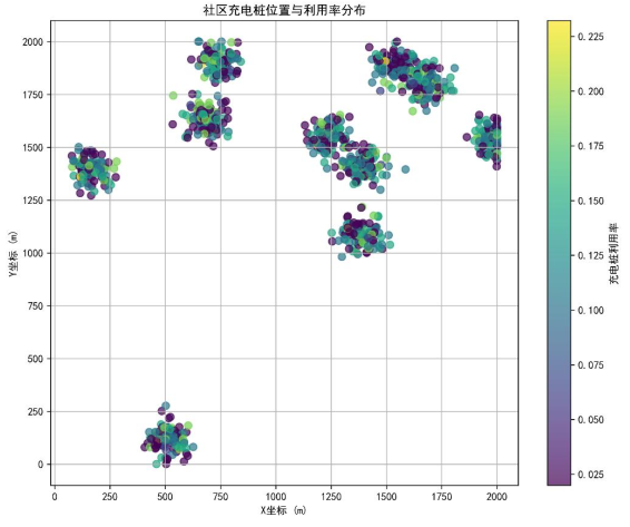 (2)社区充电桩位置与利用率分布(分时共享模型的空间优化)