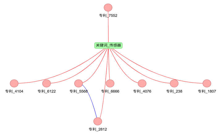 以关键词”传感器”为例,构建的部分专利异构图如下: