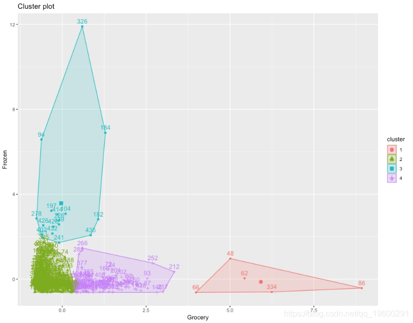 - 使用k-medoids聚类绘制一个图表,显示该数据的四个聚类。