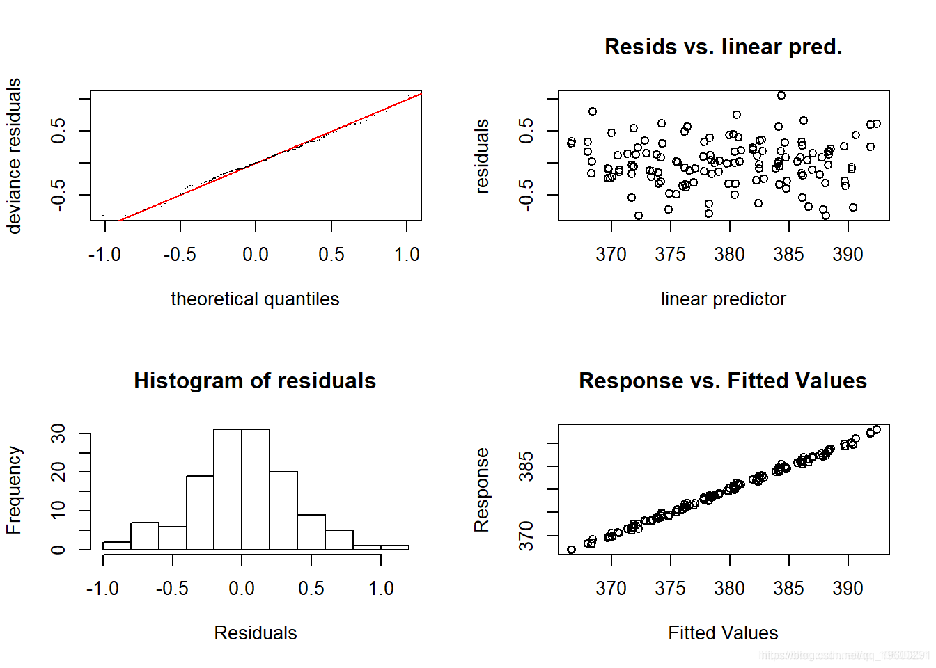 请注意光滑项如何减少到“普通”线性项的(edf为1)-这是惩罚回归样条曲线的优点。但如果我们检查一下模型,就会发现有些东西是混乱的。