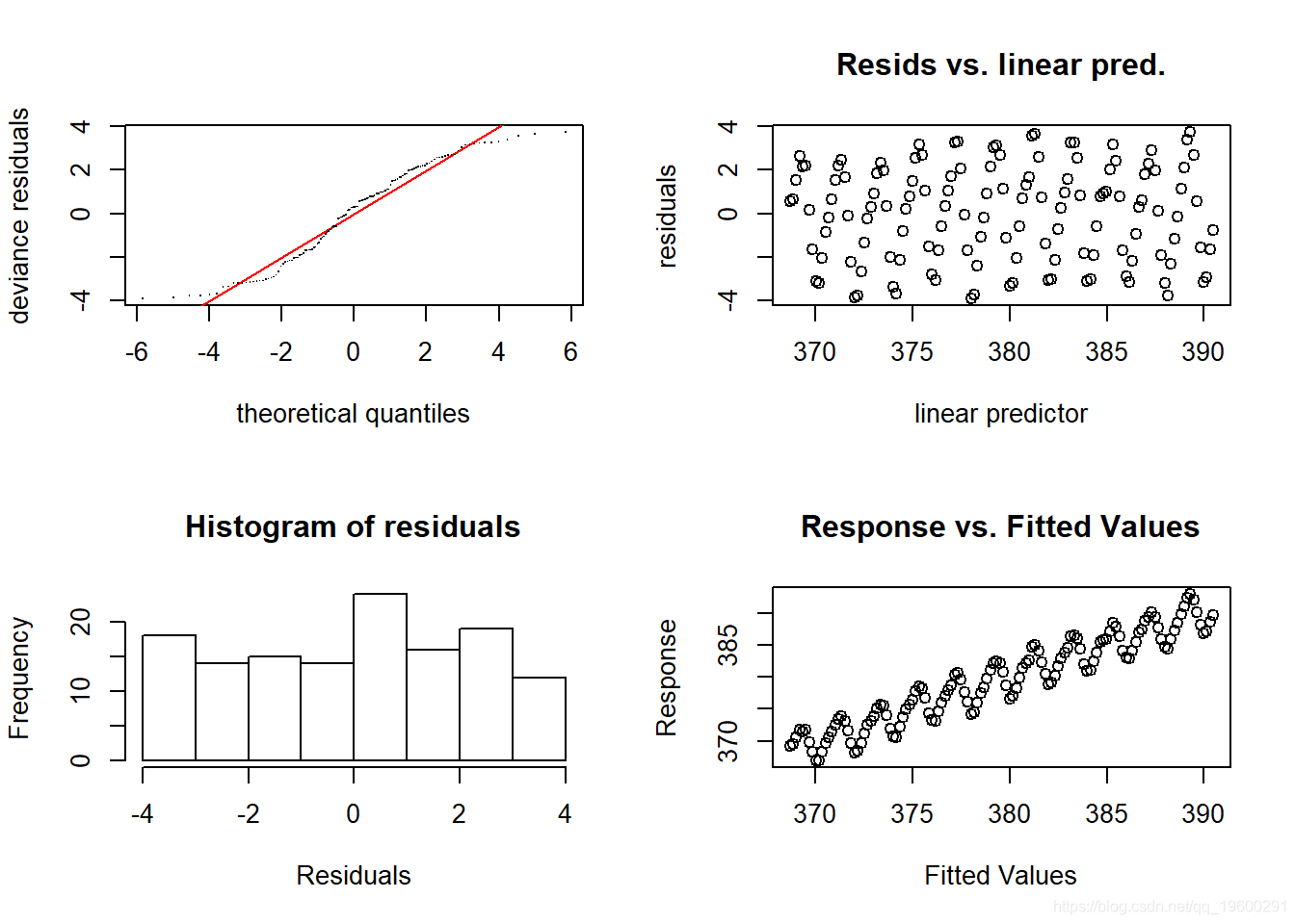 查看图或 summary(lm_y),您可能会认为模型拟合得很好,但请查看残差图