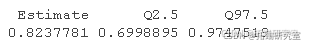 ,学生留级的几率降低了大约 (1 – 85%) = 15%。“Q2.5”和“Q97.5”分别指不确定区间的下限和上限。该置信区间不包含零,表明该变量可能有意义。
