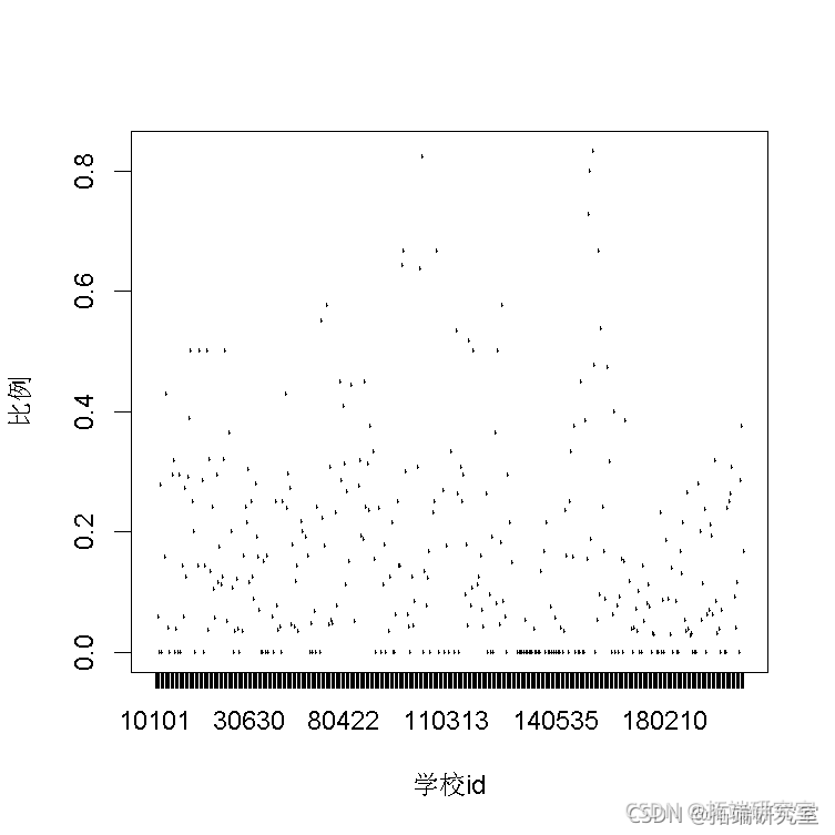 以下图为例。该图显示了各个学校留级学生的比例。我们可以看到不同学校之间的巨大差异。因此,我们需要多层次模型。