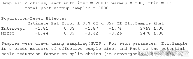 为了拟合贝叶斯二项逻辑回归模型,我们还使用了brm