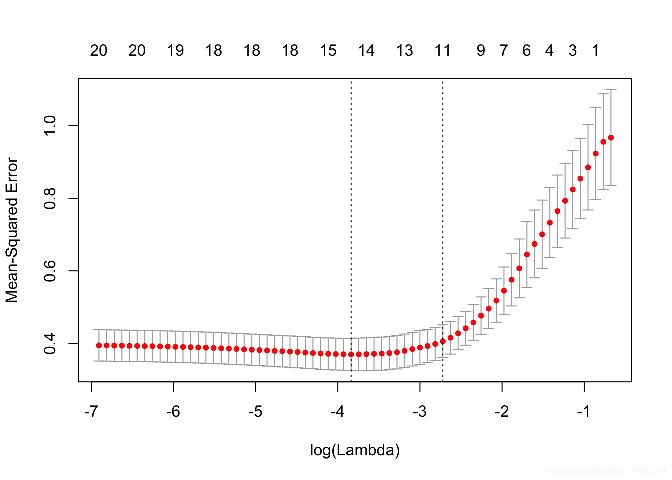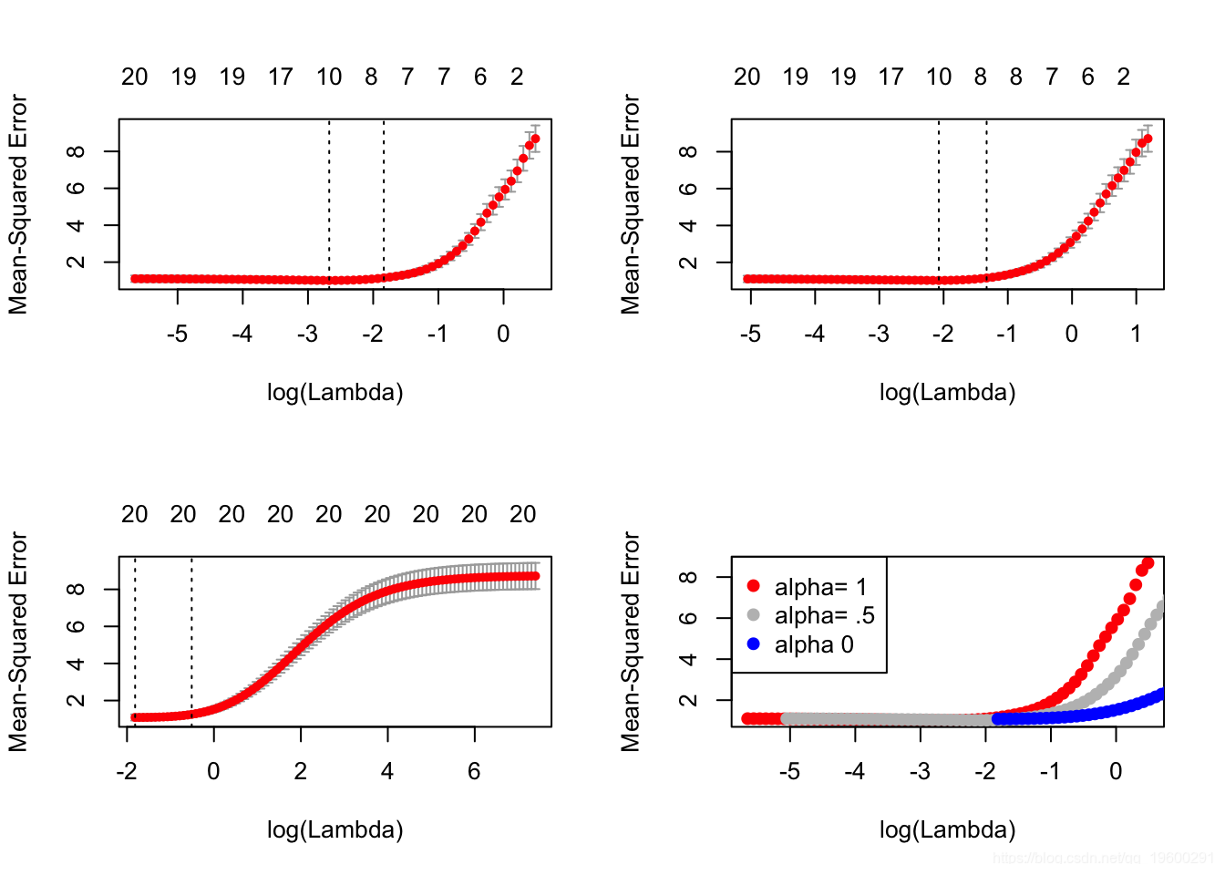 。 弹性网络惩罚由α控制,LASSO(α= 1,默认),Ridge(α= 0)。调整参数λ控制惩罚的总强度。