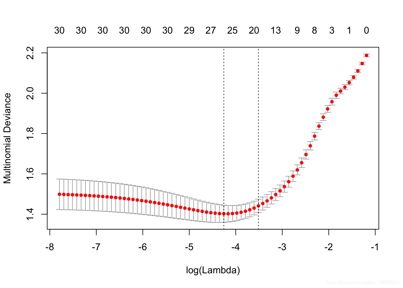 glmnet 如果我们只是输入对象名称或使用print 函数,则会显示每个步骤的路径 摘要 :