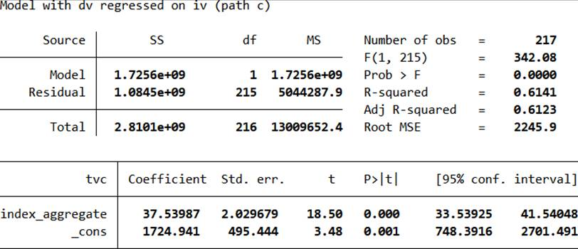 • tvc = 1039.694 + 12.85999×index_aggregate + 0.4974641×income + e3
