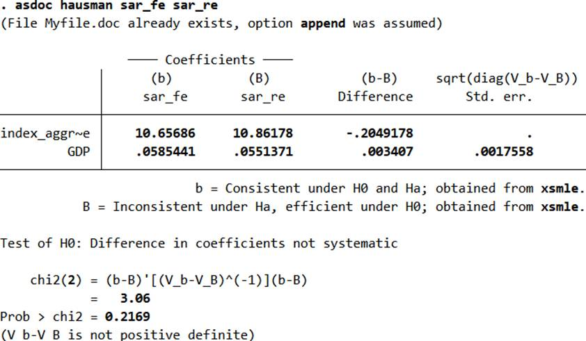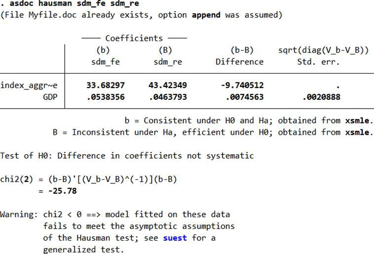 1. Hausman检验:用于判断固定效应与随机效应,空间杜宾模型(SDM)、空间误差模型(SEM)的Hausman统计量为负,接受随机效应假设;空间滞后模型(SAR)统计量为正,拟合度最优,初步选定SAR模型。