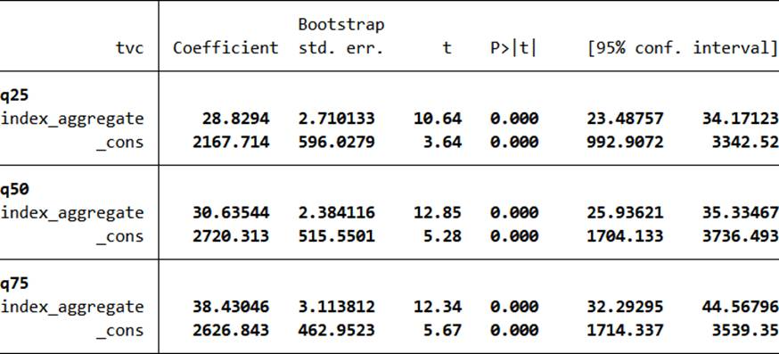 qreg tvc index_aggregate income GDP, quantile(0.25)