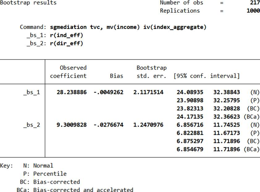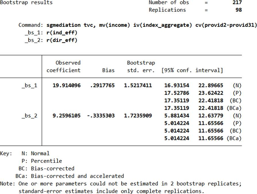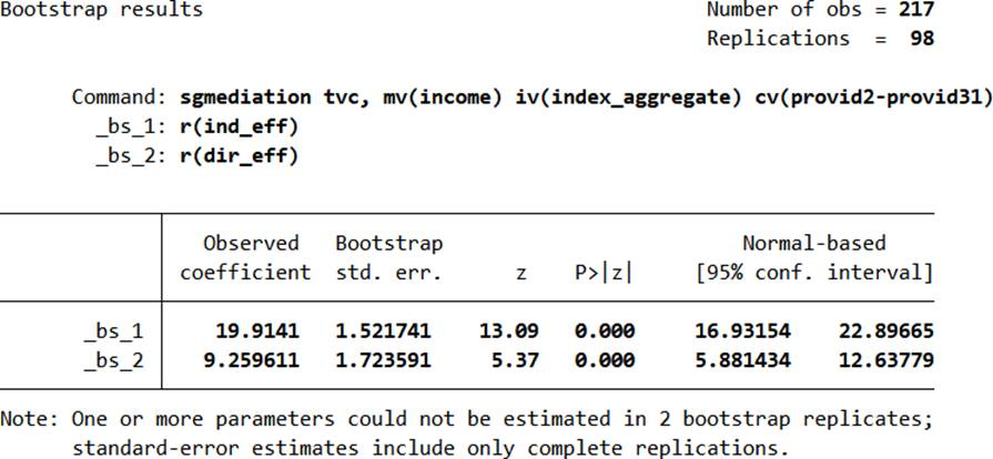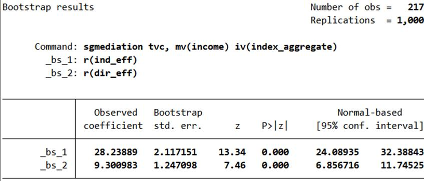 3. 直接与间接效应:tvc = i3 + c’×index_aggregate + b×income + e3(b显著说明中介效应存在,c’≠0为部分中介)