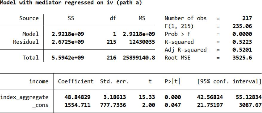 2. 中介路径:income = i2 + a×index_aggregate + e2(a显著说明核心变量影响中介变量)