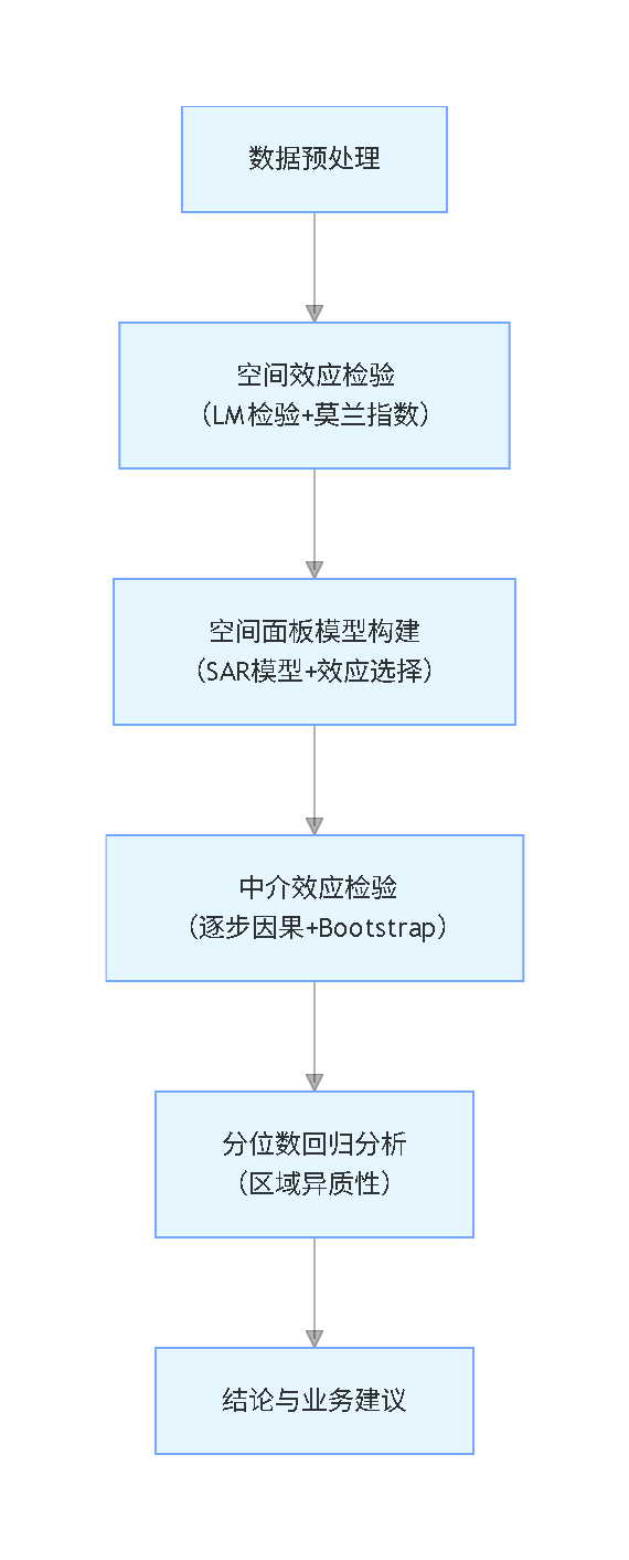 基于面板数据,运用Stata构建超效率SBM模型和空间杜宾模型SDM,引入中介变量分析智慧城市建设对经济高质量发展的影响机制与空间效应。